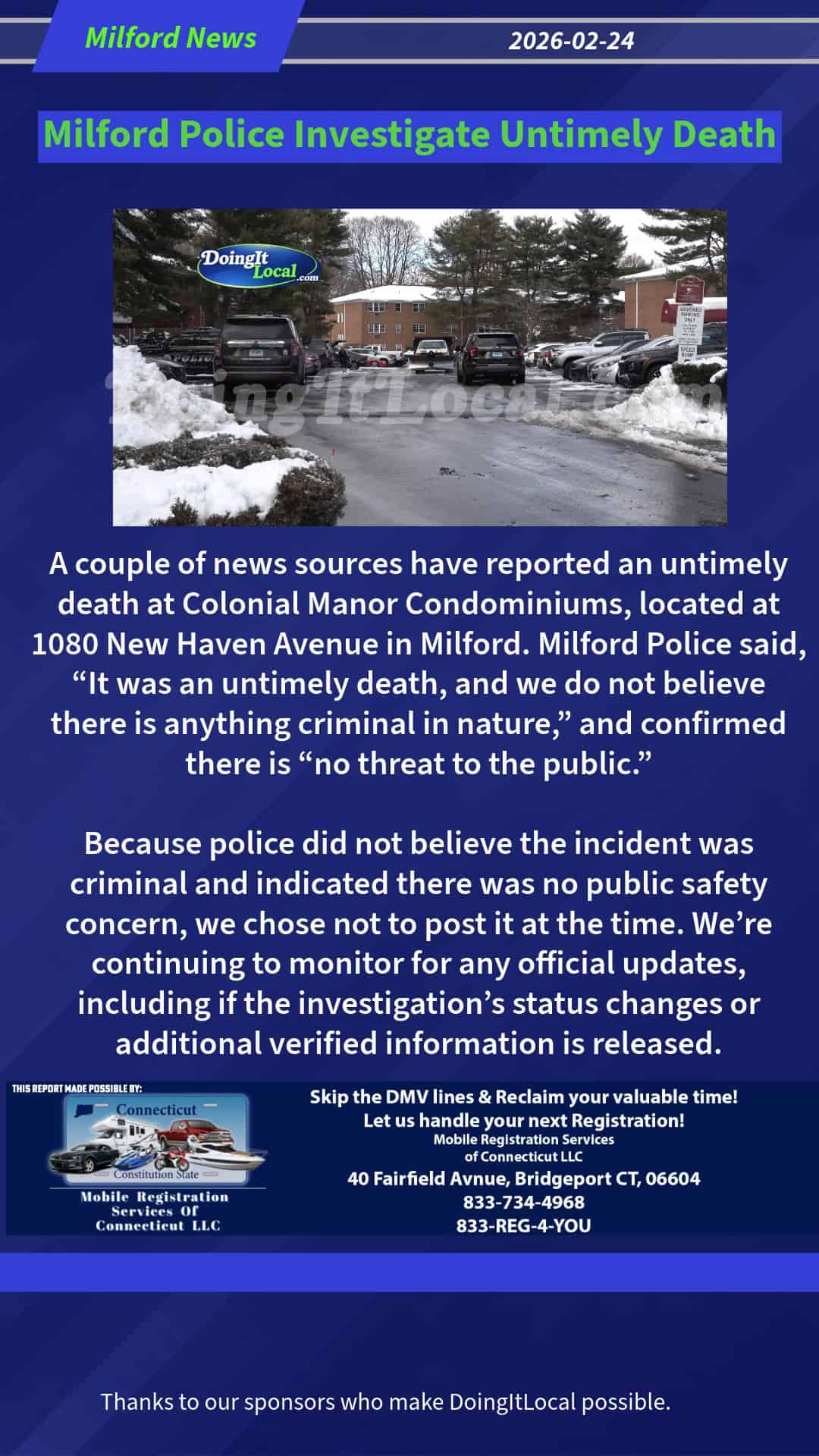 FULL PRESS RELEASE (Fairfield County, CT) – State and local officials across Connecticut are urging residents to prepare for a significant winter storm expected to bring heavy snowfall, blizzard conditions, damaging wind gusts, and possible coastal flooding beginning Sunday, February 22, 2026, and continuing through Monday, February 23, 2026. Governor Ned Lamont has declared a statewide State of Emergency and activated Connecticut’s Severe Cold Weather Protocol, effective Sunday at noon through at least Tuesday at noon. The state has also issued a commercial vehicle travel ban on all limited access highways beginning at 5:00 PM Sunday, remaining in effect until further notice. Emergency and essential supply vehicles are exempt. Forecasts predict: 18–24 inches of heavy, wet snow in southern Connecticut…