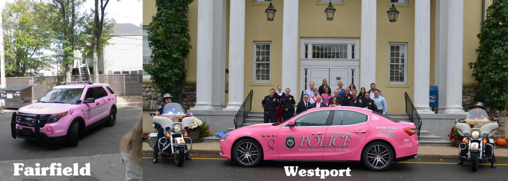 #Westport CT–#Fairfield CT–In recognition of Breast Cancer Awareness Month, both Fairfield and Westport will have pink police cars for the month of October. Westport sported a 2016 Maserati, with decal work (vinyl wrap) was donated by Maserati of Westport, but will be returned to the dealership after October. Fairfield PoliceChief Gary MacNamara has authorized the repainting of a police cruiser as a reminder to this important disease that has touch everyone in one way or another.