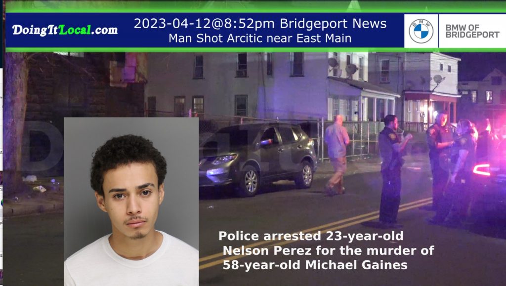 #Bridgeport CT–This morning members of the Bridgeport Police Department’s Homicide Squad, assisted by the Connecticut State Police Violent Crime Task Force-Bridgeport, arrested 23-year-old Nelson Perez for the murder of 58-year-old Michael Gaines of Bridgeport CT. Mr. Gaines was murdered on April 12, 2023, at the corner of East Main Street and Arctic Street located on the City’s East Side. Perez has been charged with 53a-54a Murder, 53a-217 Criminal Possession of a Firearm, and 53-203 Illegal Discharge of a Firearm. He has a 2-million-dollar bond and is scheduled to appear in court on Friday June 2, 2023.