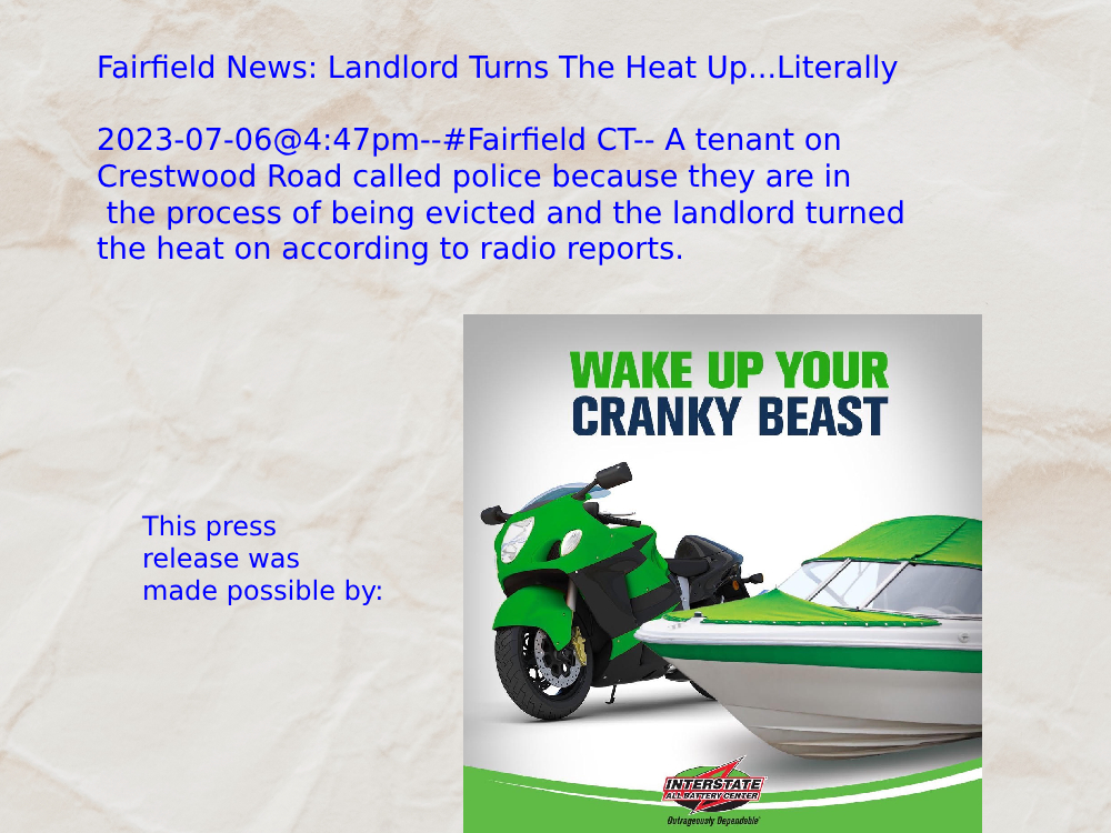 2023-07-06@4:47pm–#Fairfield CT– A tenant on Crestwood Road called the police because they are in