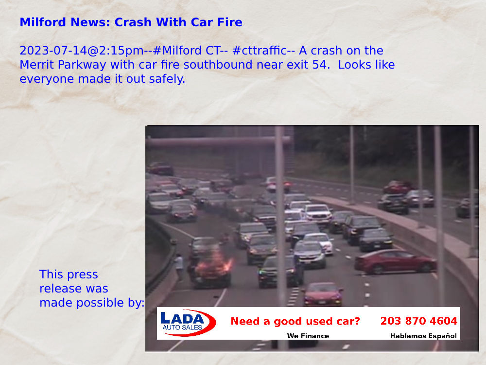 2023-07-14@2:15pm–#Milford CT– #cttraffic– A crash on the
