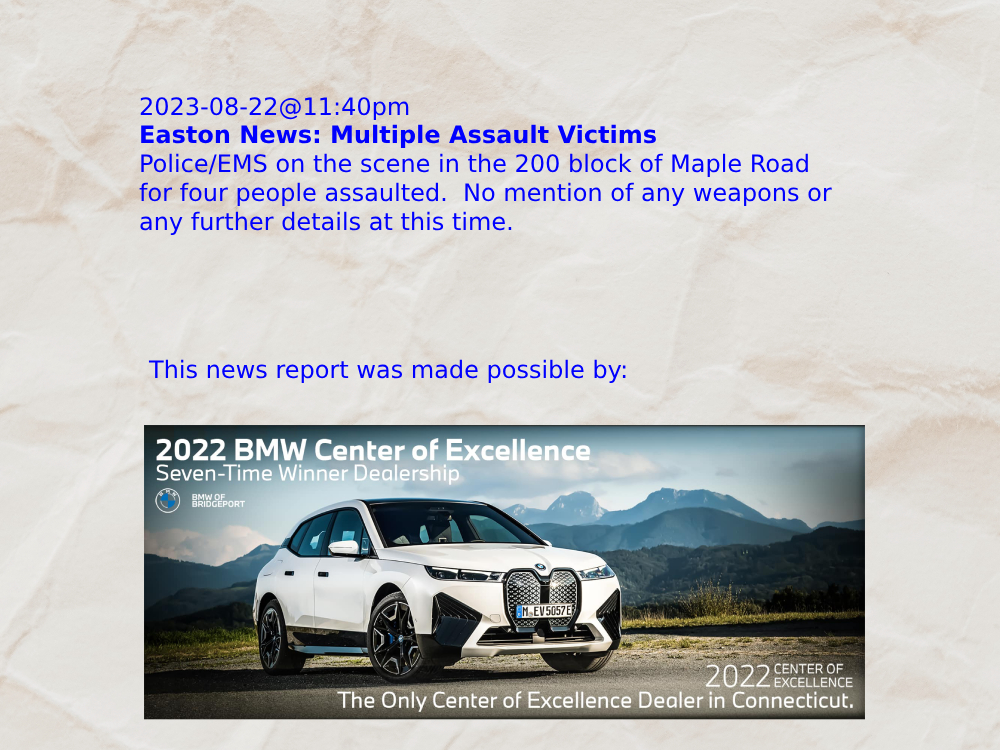 Police/EMS on the scene in the 200 block of Maple Road for four people were assaulted. No mention of any weapons or any further details at this time.