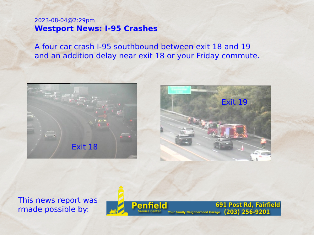 2023-08-04@2:29pm–A four-car crash on I-95 southbound between exits 18 and 19