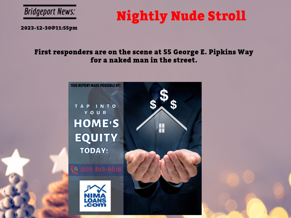 2023-12-30@11:55pm–#Bridgeport CT– First responders are on the scene at 55 George E. Pipkins Way for a naked man in the street.