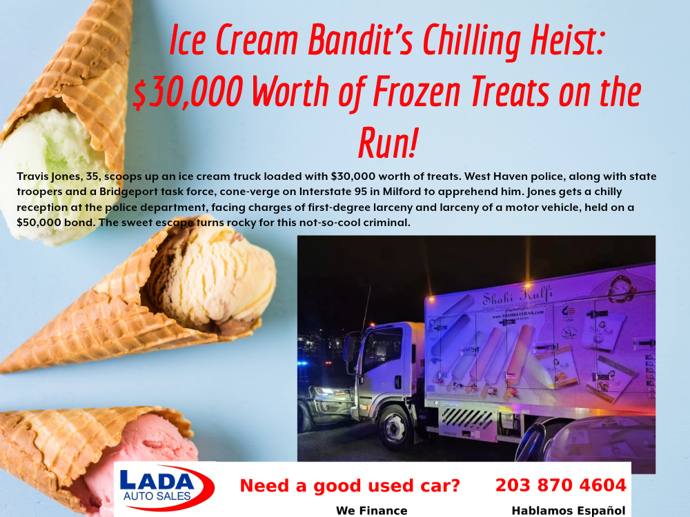 The incident unfolded at approximately 9 p.m. on Monday when West Haven police received a 911 call reporting the theft of an ice cream truck from a Boston Post Road business, said Sgt. Patrick Buturla in a news release on Tuesday.