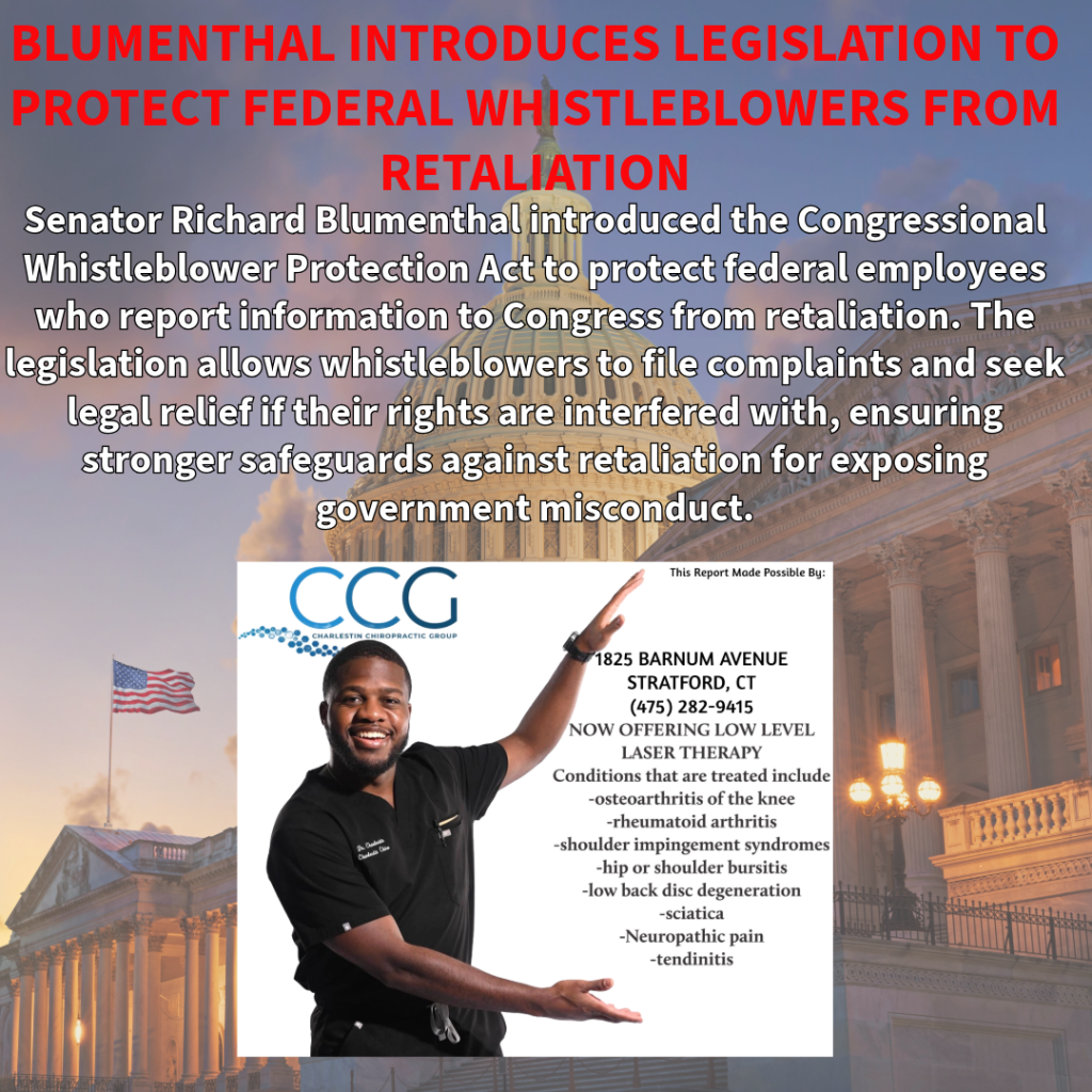 “Whistleblowers must be protected against retaliation when they bravely reveal waste, fraud, and abuse,” said Blumenthal. “This measure will strengthen safeguards for anyone reporting government misconduct and empower them to seek relief if they face retaliation. Congressional whistleblowers are essential to our democracy, and they deserve vigorous protection.”