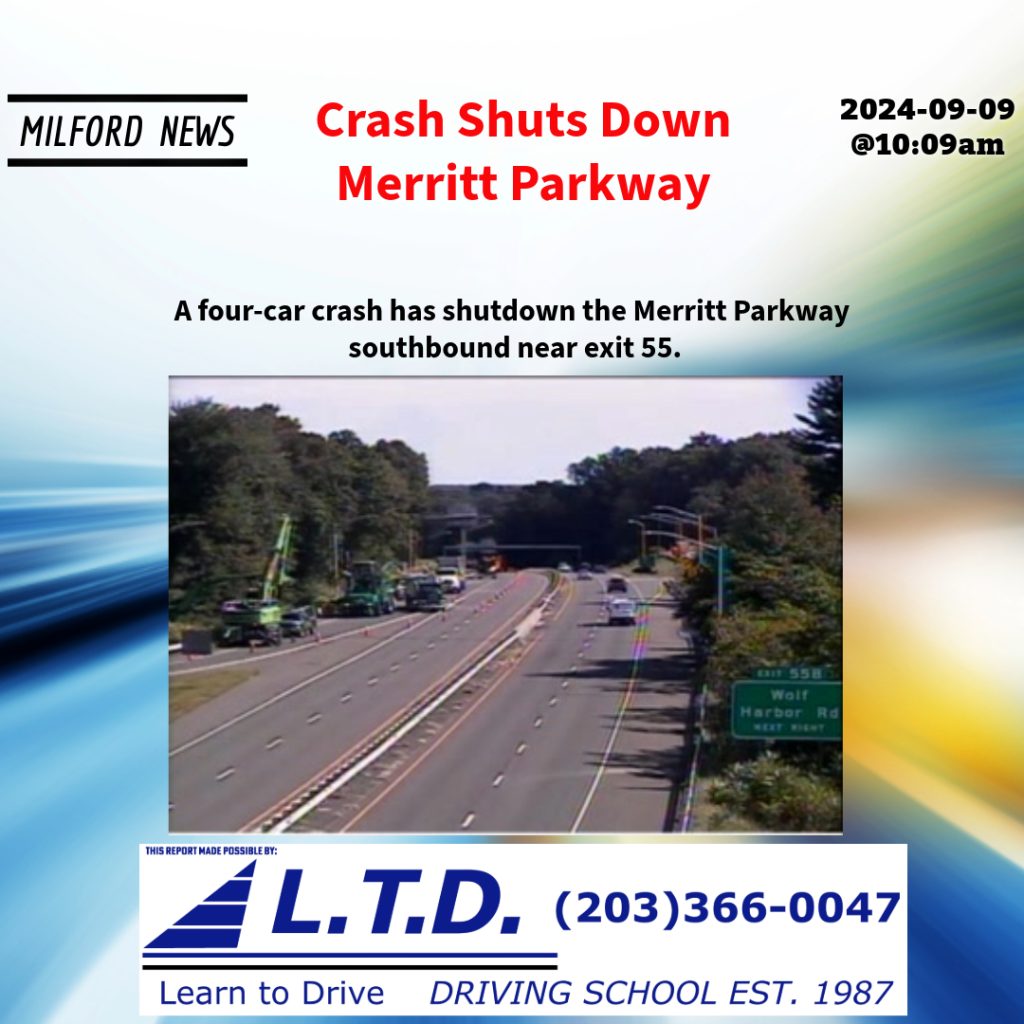 A four-car crash has shutdown the Merritt Parkway southbound near exit 55.