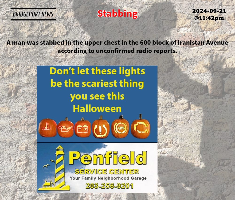 A man was stabbed in the upper chest in the 600 block of Iranistan Avenue according to unconfirmed radio reports.