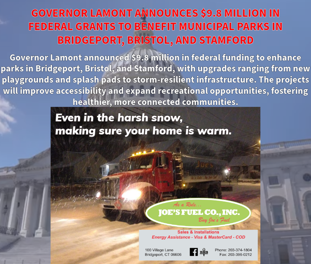 (HARTFORD, CT) – Governor Ned Lamont and the Connecticut Department of Energy and Environmental Protection (DEEP) today announced that the cities of Bridgeport, Bristol, and Stamford are being awarded more than $9.8 million in competitive federal funding that will benefit four municipal park development projects in each city.