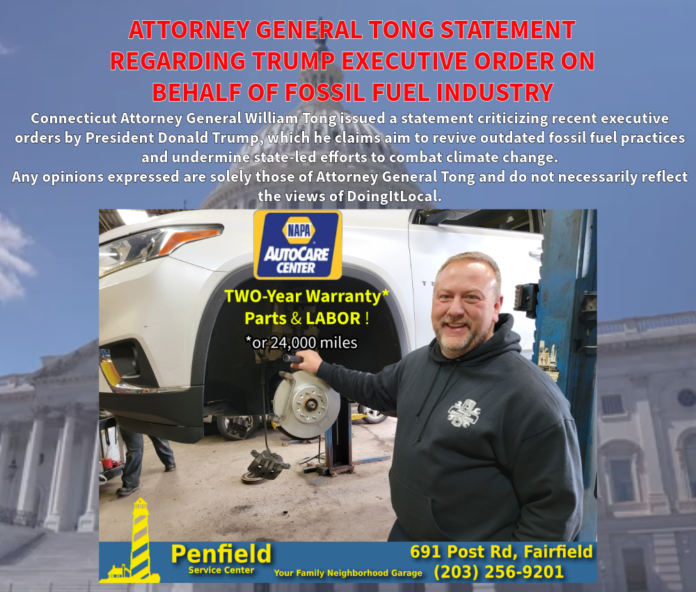 Attorney General Tong further addressed Trump’s ill-conceived plan to revive old-fashioned, dirty and dangerous coal power plants.