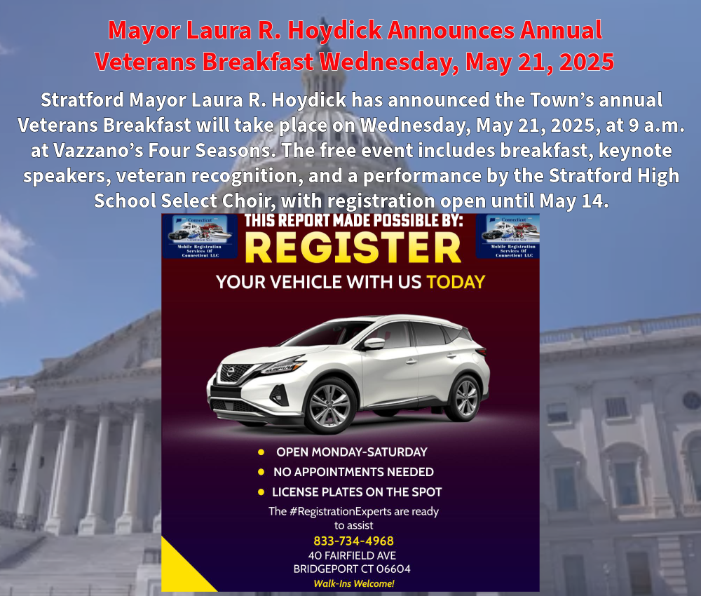 STRATFORD — Mayor Laura R. Hoydick today announced that the Town of Stratford will host