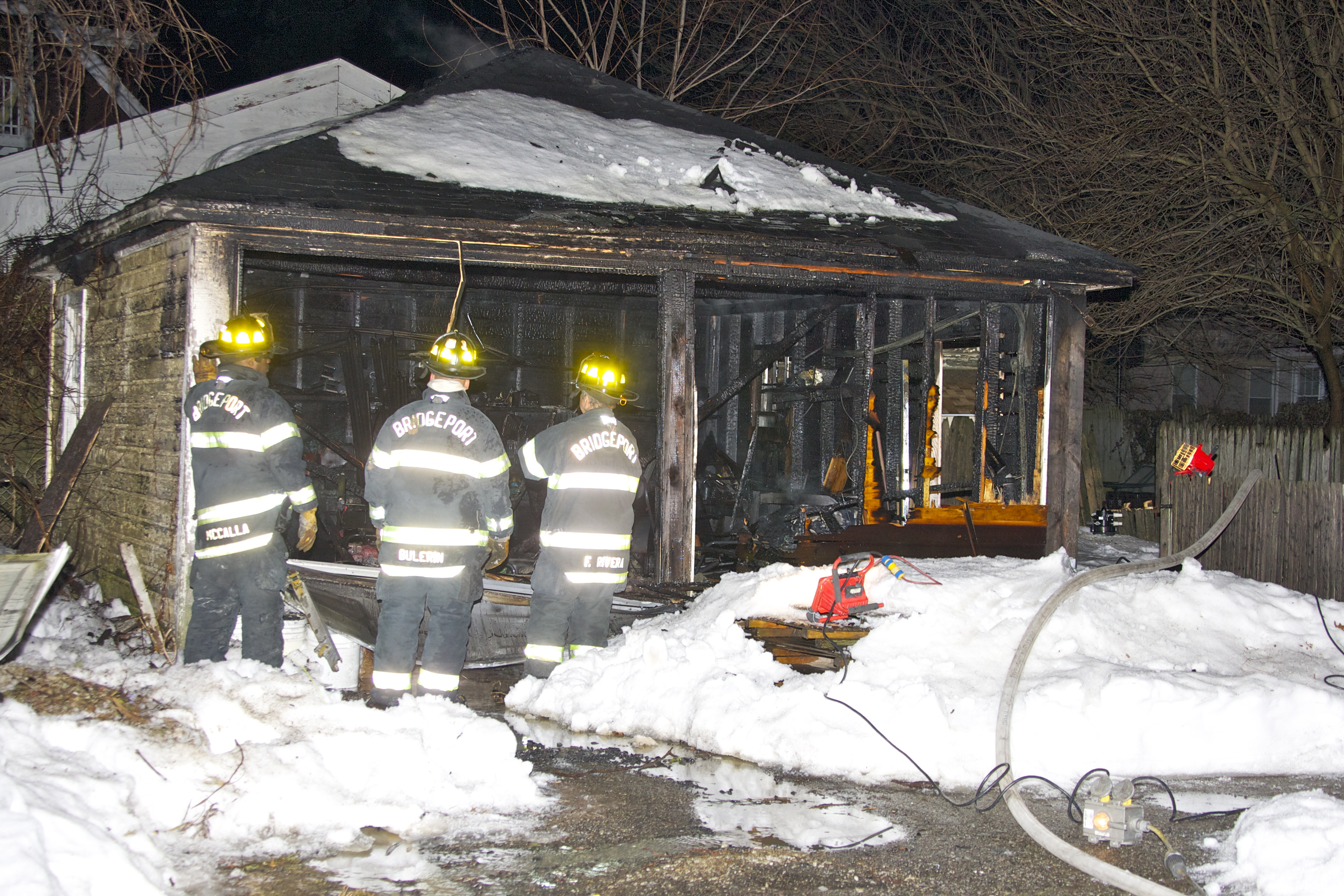 ust before midnight a Bridgeport Police Officer on routine patrol discovered this garage on fire at the corner of Beechwood Avenue and Howard Avenue. They soon reported the exact location as 1159 Howard Avenue. As firefighters were on the way they also let the firefighters know that there was another garage right behind it that was of brick construction and wood roof on fire yet but firefighters did not let that happen. Firefighters quickly went to work and prevented a complete loss of this two bay garage. Special thanks to Chris Clarke from firstduephotography.smugmug.