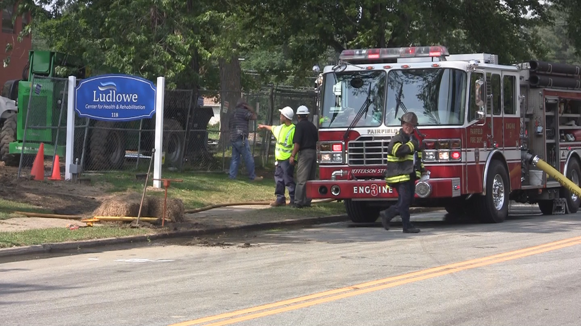 Video Report- 2:44pm–#Fairfield CT #cttfire Just before 3pm construction workers outside the Ludlowe Health Care building struck a high volume gas line right near the building’s main entrance at 118 Jefferson Street. Firefighters did meter gas inside the building so as a precaution residents facing the front of the building were evacuated to the rear of the building. Because of the serious nature of the call firefighters handled it as structure fire and sent additional resources to the scene. Workers from the gas company were quick to the scene and turned off the gas to the building. Firefighters remained on the scene checking for any left over pockets of gas and left scene around 4:30pm.