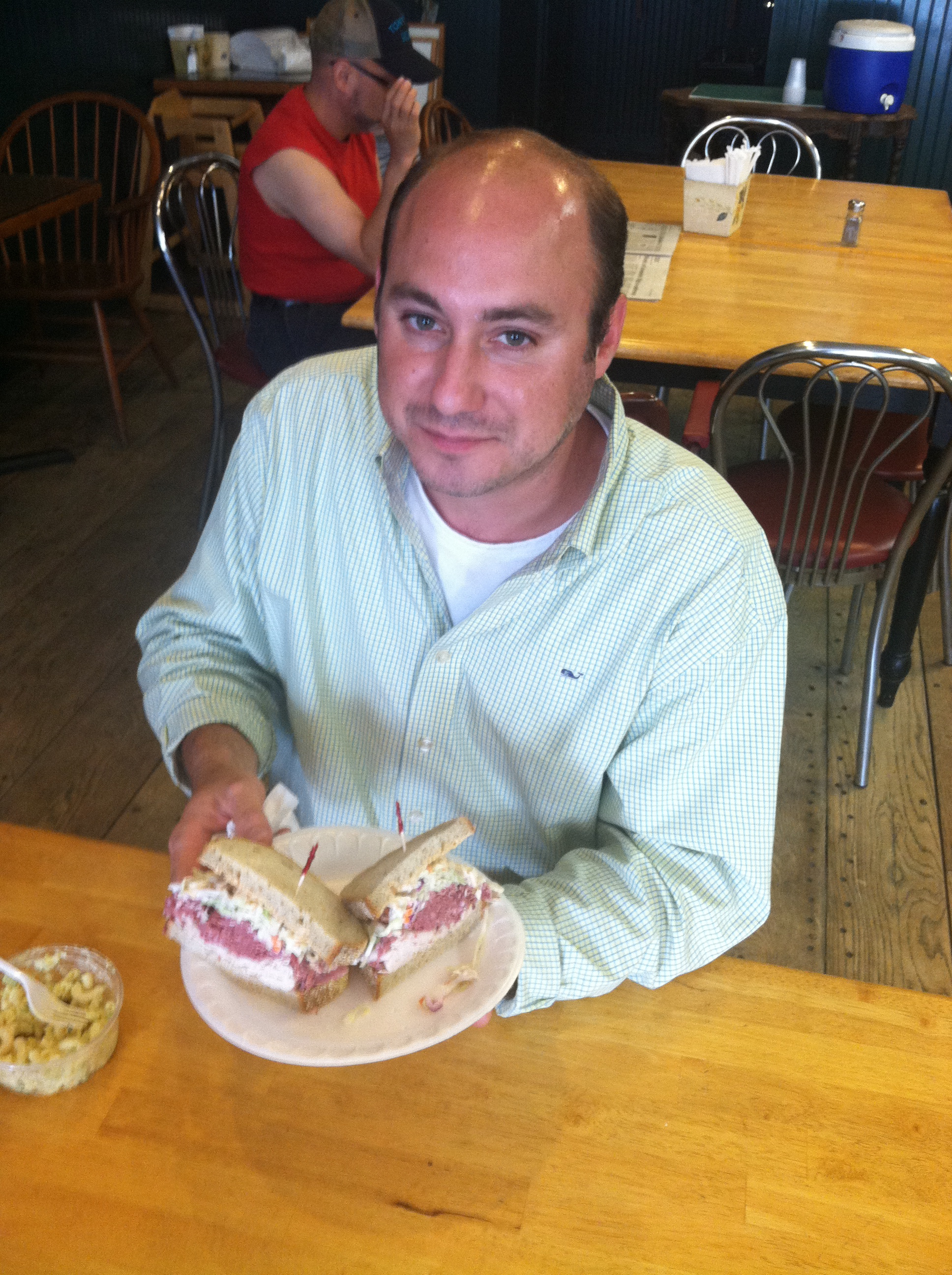 TURKEY .CORNED BEEF PILED HIGH WITH CREAMY SLAW AND 1000 ISLAND DRESSING