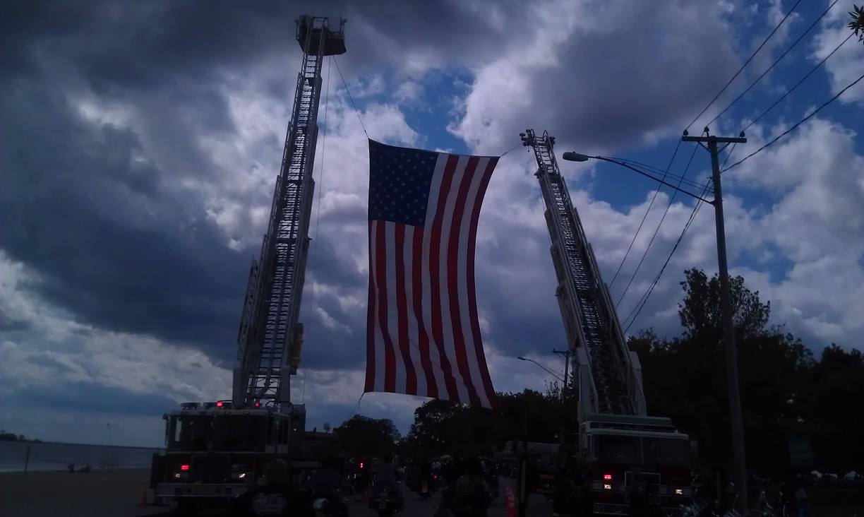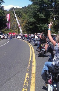 Local and State Police agencies, area Fire Departments, CERT and Police Explorer units all worked diligently to close off the 60 mile route the ride traveled with Fire Departments in each town hanging giant American flags over the route. As an acknowledgement to the work done by the first responders and the riders themselves it should be noted that the end of the day only one biker (who was overcome by the heat of the day) required medical attention, no other injuries or accidents were reported.