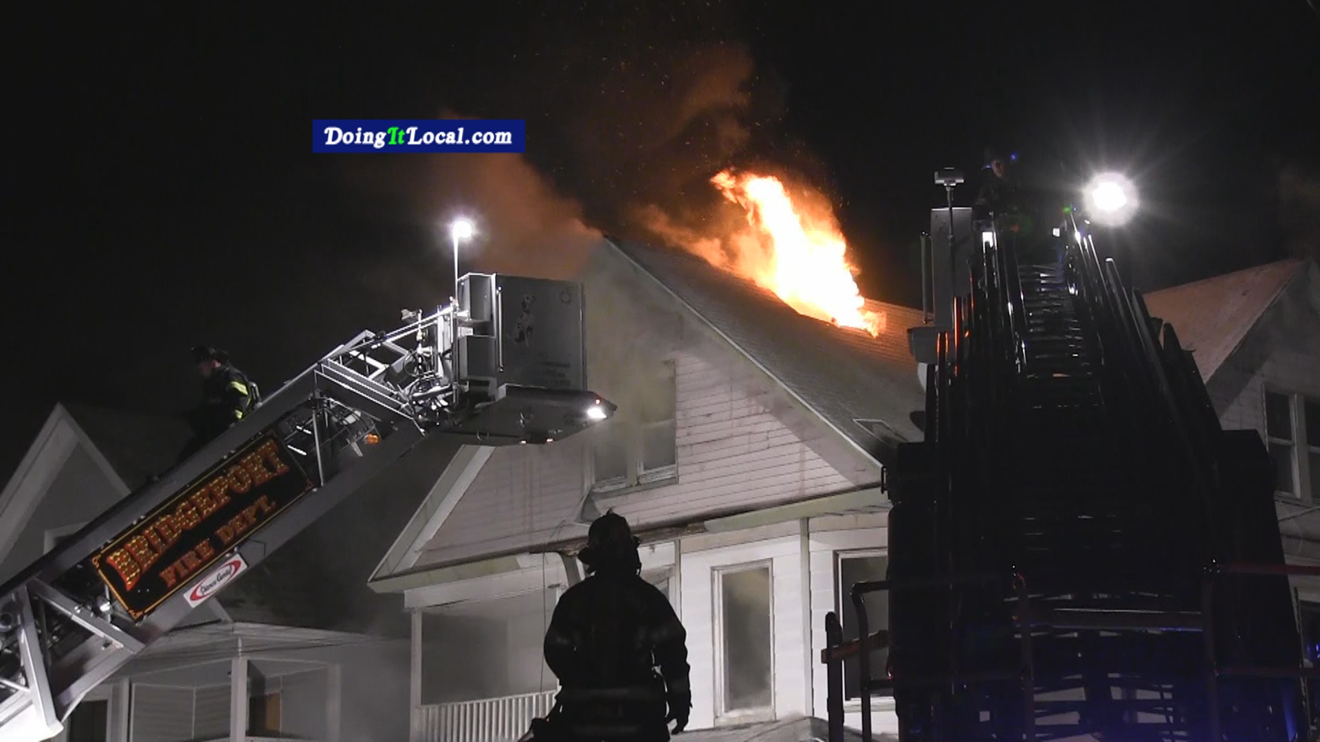 1:10am–#Bridgeport CT–Engine 6 happened to come upon this fire and called in the full assignment around 1:10am Monday night. The multi-family house appeared to be abandoned and previously boarded up. Heavy fire was seen on the second floor and extended into the attic which created the most spectacular views of the fire. Firefighters called a recall of fire and holding all units just after 2am. At 2:59 they requested the gas company to the scene. There were no reported injuries.