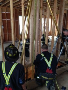9:10am–#FAIRFIELD CT– #Southport CT–October 10, 2013: At 9:10am on Thursdaymorning Fairfield’s Emergency Communication Center received an emergency call reporting that “four men were bringing a tub to the third floor when the stairwell collapsed to the basement” at 138 South Gate Lane in Southport. Fairfield Fire, Police and AMR units were dispatched to respond, with Engine 4 arriving on scene at 9:15 to confirm the initial report of four workers trapped in the basement of a building under construction. Under the direction of Lieutenant Justin Greenhaw Engine 4 took command and directed incoming Engine 1 and Ladders 1 and 2 to prepare for extrication.