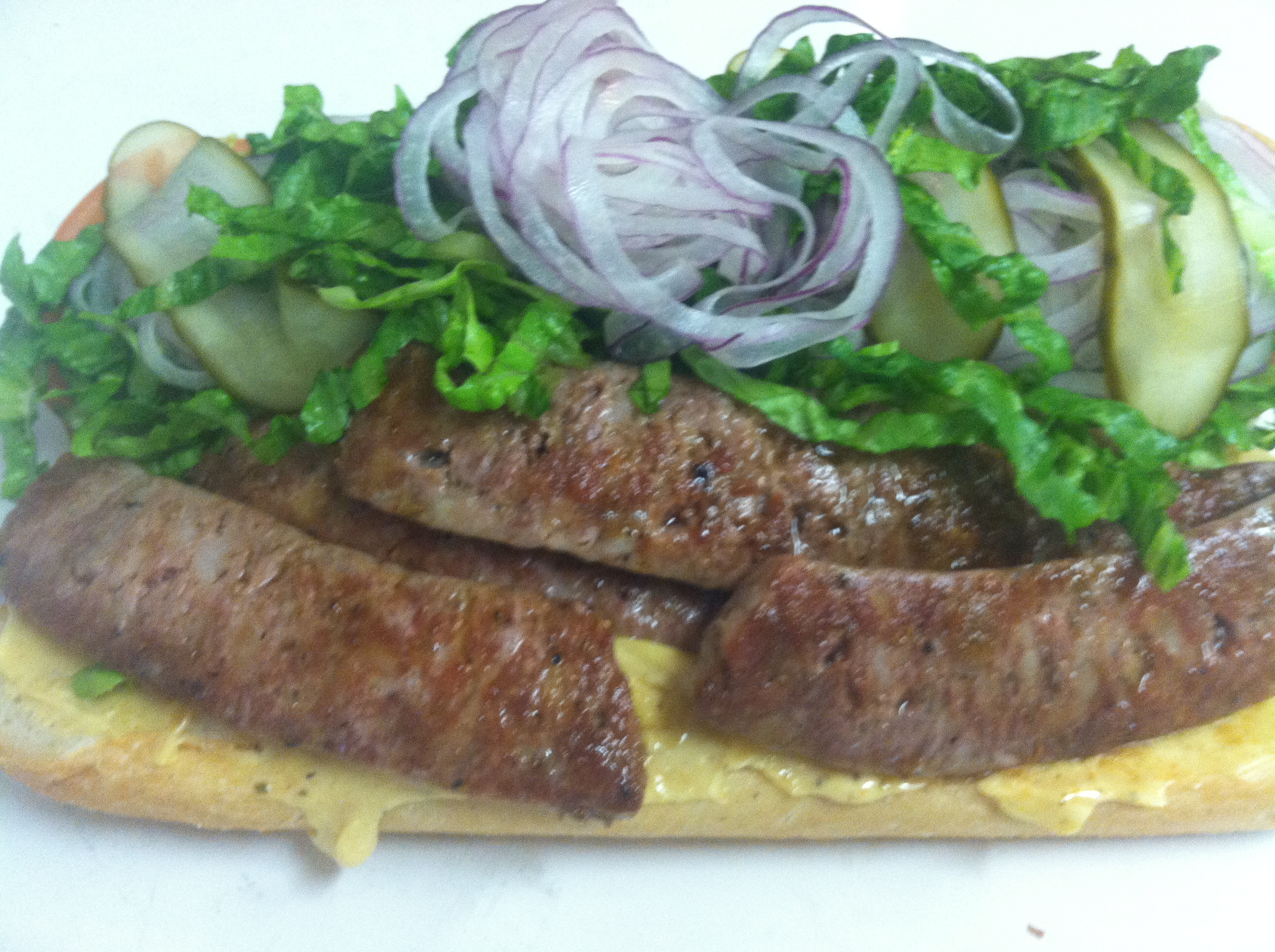 Woods End Grilled Italian Sausage Sandwich with Garlic Mayo !!