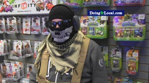 4:49pm–#Fairfield CT–Multiple police were dispatched to the Game Stop on Black Rock Turnpike for a man with a gun. As police were on the way it was thought to be a toy gun according to the caller. Police taking no chances approached the scene with caution with assault weapons at the ready. Police confirmed it was a man in costume for the the promotional release of the video game Call of Duty -Ghost. The man hired by the store for the promotion remained on scene, too shaken to talk to us. The manager asked me to leave the store offering no insight to the thinking on this promotion.