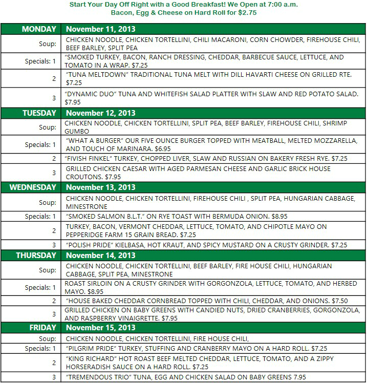 Plan your week! WOODS END DELI – 900 WOOD AVE – BPT