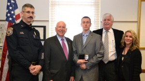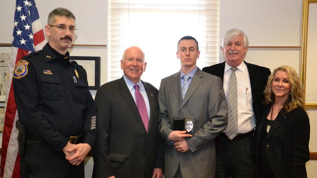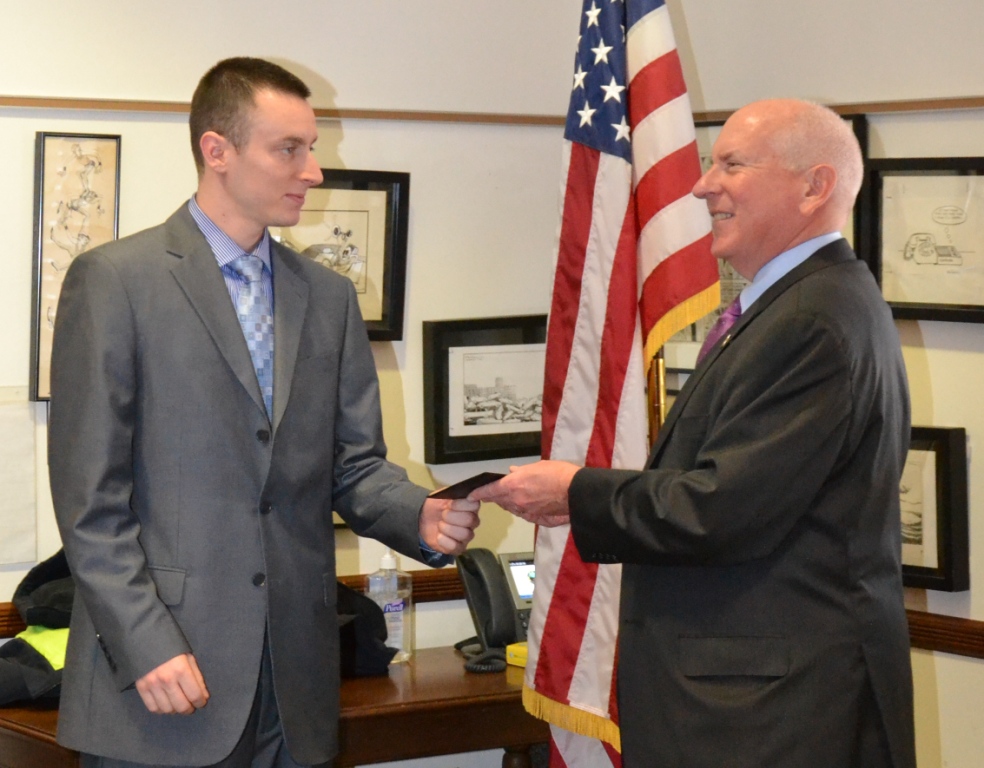 Westport CT–On Thursday, March 20, 2014 Brendan Fearon was sworn in as a Westport Police Officer by First Selectman Jim Marpe .The ceremony was held at Town Hall.