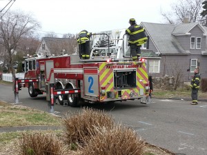 #Fairfield CT–#ctfire–Firefighters trained today on an condemned home on Benton Street. Firefighters were able to conduct drills, use of the ladder truck, cut open a ventilation hole in the attic and hosted mayday drills. The condemned home was to the right and not seen in the photo below: