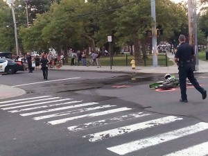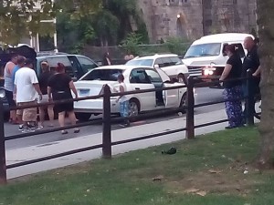 #Bridgeport CT– Police investigating an accident at Barnum and Kossuth between a car and a dirt bike. According to viewer Thalia the dirt bike struck the back of the white car earlier this afternoon.