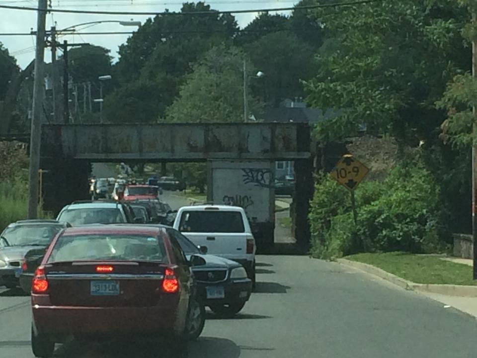 3:11pm–#Stratford CT– Our friend George Mulligan sent in this photo of a truck stuck under the underpass at West Broad Street.