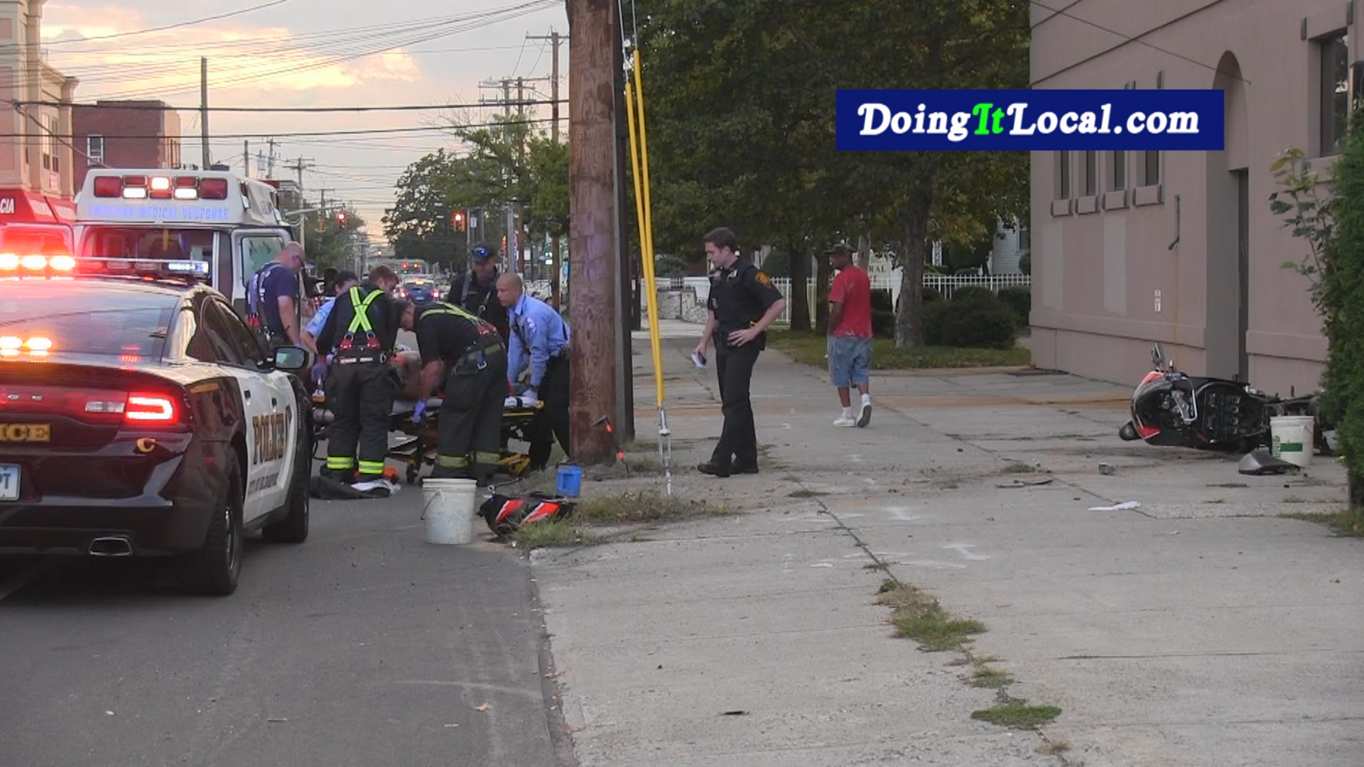 Un motociclista fue trasladado de urgencia al hospital después de golpear un poste de electricidad en la avenida de Fairfield justo después Clinton Avenue. El sitio ha sido escenario de una serie de accidentes, por lo general por los coches de conducción demasiado rápido y no negocian el recodo del camino.