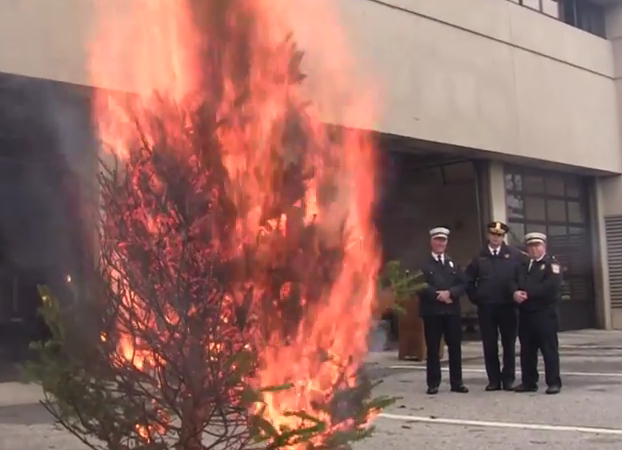 Before you put the presents under the tree make sure it has plenty of water if it is a real tree. Here is a demonstration Bridgeport Firefighters and Mayor Bill Finch did last week to show just how fast a tree can catch fire and burn up!
