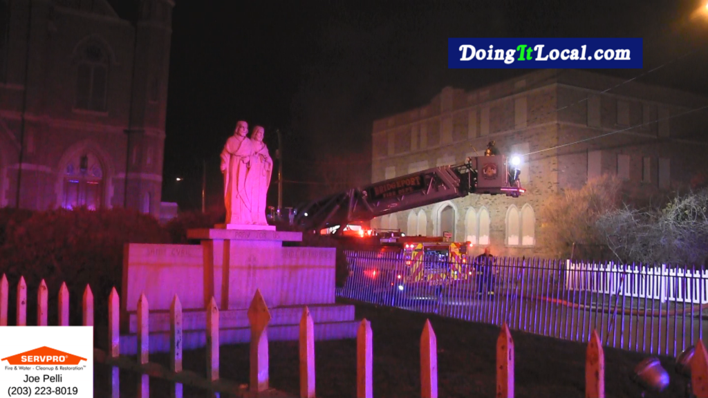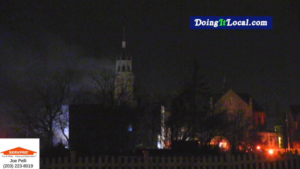 1:20am–#Bridgeport CT–Once again, police on routine patrol discover a fire and report and get firefighters to the scene before damage could become more extenisve at St. Cyril Church at 50 Church Street. A fire, possibly set in the dumpster extended into the boarded up rectory. Firefighters did a search of the large building just in case there were any living inside. It did not sound like they located anyone from radio reports. The fire extended to the second floor and basement. Firefighters quickly had the fire under control and extinguished. There were no reported injuries. The fire marshal was called to the scene.