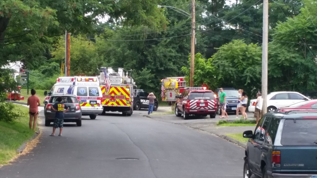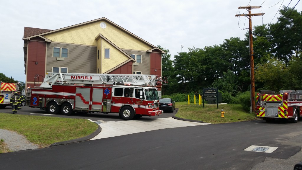 2:55pm–#Fairfield CT– Sprinkler systems prevented a major fire in the high density apartments at 130 Fairchild Avenue on the second floor. The dead end street is clogged with emergency vehicles as the opponents of the high density apartment have claimed would happen in an emergency. Firefighters find a heavy smoke condition on the second floor and are now reading high carbon monoxide levels throughout the building. Firefighters are in the process of ventilating and because of the carbon monoxide levels each apartment must be metered by the firefighters. Two people are being evaluated for smoke inhalation.