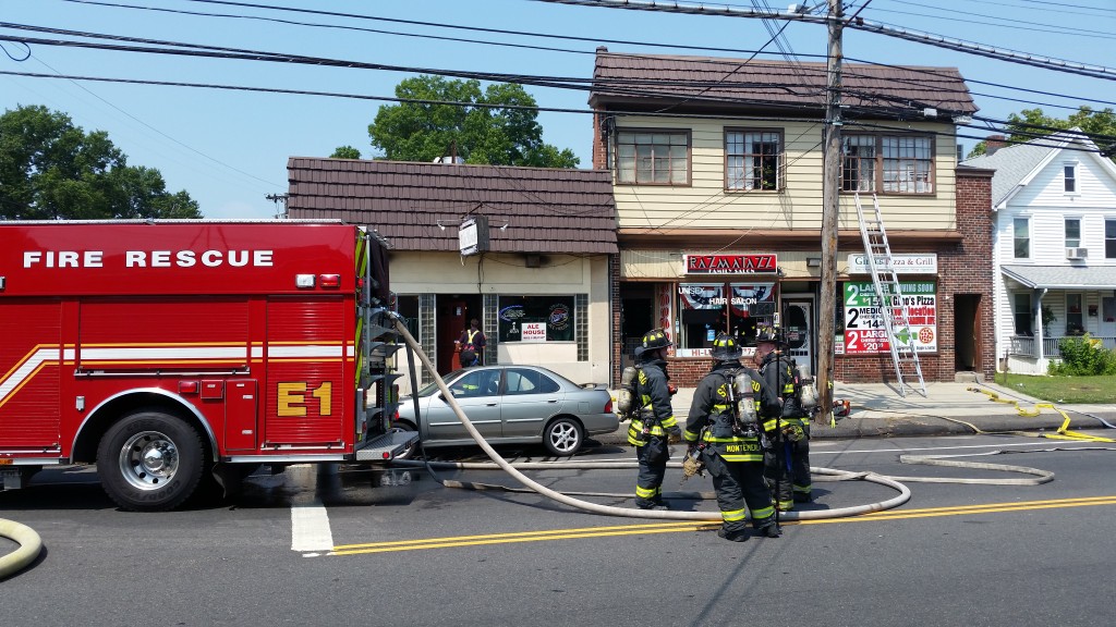 12:55pm–#Stratford CT–Firefighters on scene of 1720 Barnum Avenue. Firefighters make a quick knock down of a fire above Gino’s Pizza which is next door to the Ale House. Barnum Avenue is blocked at that area and side roads are congested as a result.