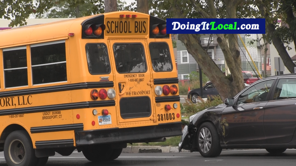 4:04pm–#Fairfield CT–Traffic was backed up on Tunxis Hill from Scap Dodge down to Kohl’s/Stop and Shop where a car crashed into the back of a We Transport school bus. There was one child onboard and EMS was called to evaluate the child.