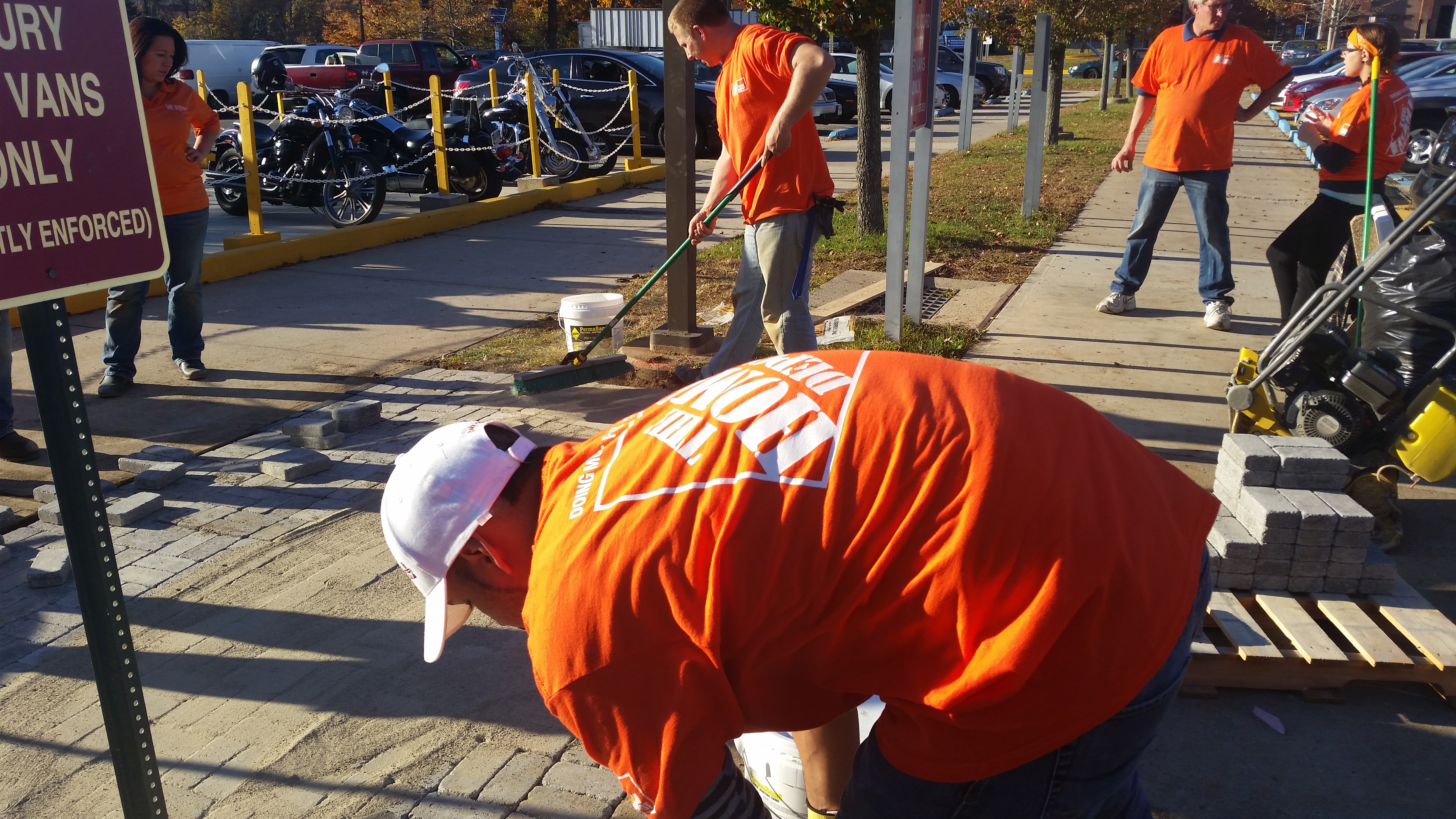 #West Haven CT-- Tuesday I had a routine consultation with a doctor at the West Haven Veteran's Hospital. When I arrived I saw dozens of orange shirts. Being the nosey report I had to find out what was going on. It turned out that Kelly from the North Haven Home Depot was leading her troops on their second trip this year to the hospital for Celebration for Veterans Campaign and dozens of volunteers from ten stores were installing pavers to make it more accessible for handicapped veterans. Kelly told me this was a district project but all the stores volunteer on the local level to give back to local veterans. What made this story special was there was no press…