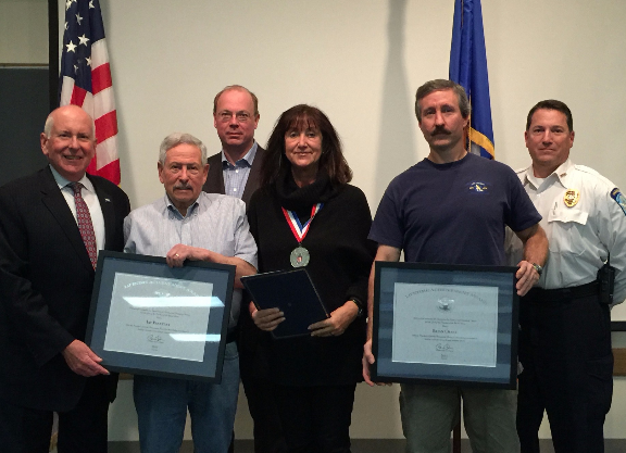 Westport Volunteer EMS members Jay Paretzky (second from left) and Brian Crane (second from right) are presented with the President’s Lifetime Achievement Award for their lifelong commitment to building a stronger nation through volunteer service, and Audrone Tarnok (fourth from left) received the 2014 Silver President’s Volunteer Service Award. The awards are issued by the office of President Obama and the