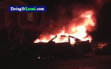1:01am–#Bridgeport CT–Tonight’s 2nd car fire was at 725 Beachwood Avenue. Firefighters quickly had it under control. The explosions heard on the video are ether the tires or windows blowing out, I’ll never get use to that!