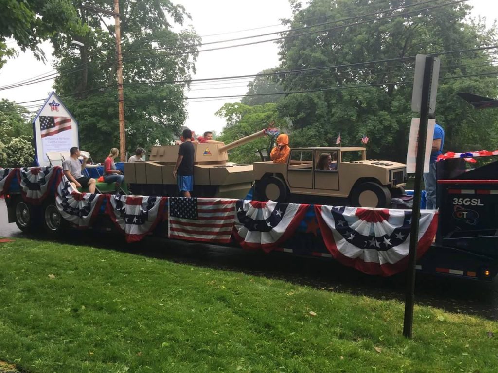 McKinley School  float drove on the Post Road even though the parade was cancelled.  The viewer who sent this in said “Cant say no to us for no parade our troops fought in the rain now they will ride”!