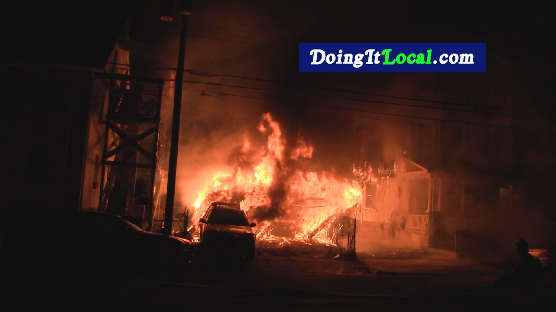 1:55am–#Bridgeport Connecticut–Tonight’s second car fire was at the intersection of Cottage and Norman Street. Witnesses told me the car was intentionally set. The fire destroyed a garage between two multi-family homes as the residents slept. Police on patrol called it in from their radios to the fire department and got the residents out of the home prior to their arrival. There were no reported injuries when I left the scene but I know it would have been a different story if it weren’t for the police’s efforts. Firefighters quickly got the inferno under control and make sure the fire did not extend into the homes.