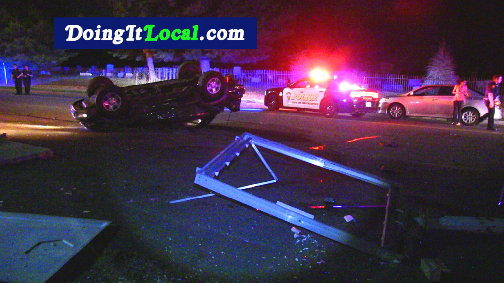 9:12pm–#Bridgeport Connecticut– A person was taken into police custody after a rollover accident at Dewy and Mountain Grove Street. One vehicle allegedly ran a stop sign. It appears the SUV hit the sign knocking it over causing the SUV to rollover.