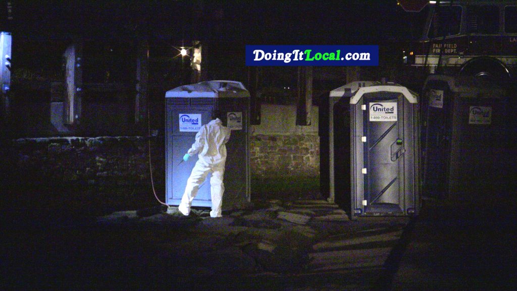 10:54pm–#Southport Connecticut–#Fairfield Connecticut–Teens threw four porta potties into the river outside 95 Harbor Road. The porta potties were set up for a road race earlier on Sunday. Connecticut Department of Energy & Environmental Protection (DEEP) was notified. Firefighters are removing them. Police are investigating but have nothing to go on… Go ahead, add your own puns. Yes, it was a slow news night!