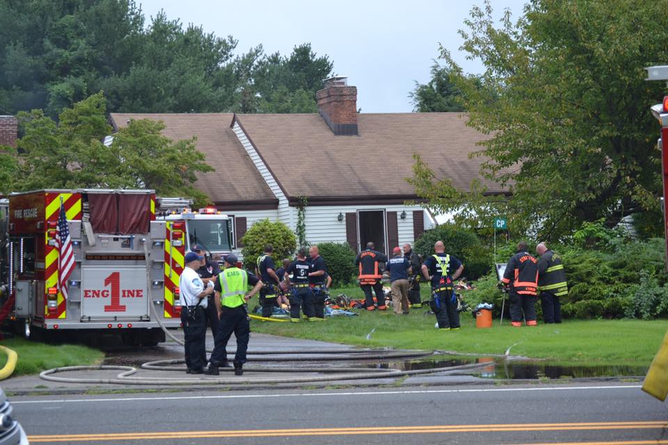 9:09am–#Stratford Connecticut– Firefighters on the scene of a house fire at Main and East Main Street across from the country club. Viewer and all around nice guy Ryan Kardamis provided this photo: