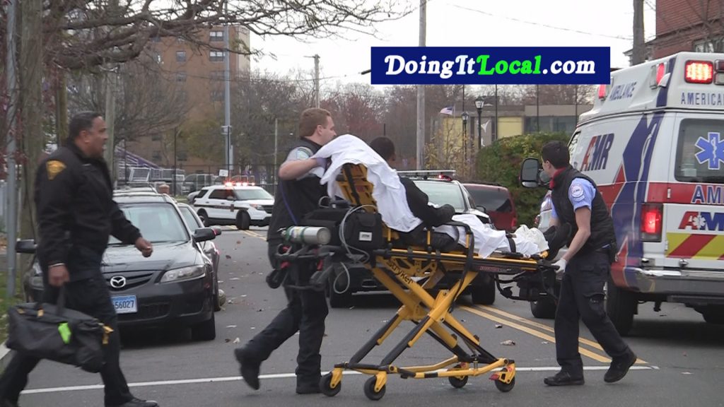 3:19pm–#Bridgeport Connecticut– A fifteen year old was shot in the leg at the intersection of Lafayette and Atlantic Street. Police are looking for a red Hyundai Santa Fe with four teens in the car. The shooter is reported to be an 18 year old classmate from Bassick High School according to radio reports.