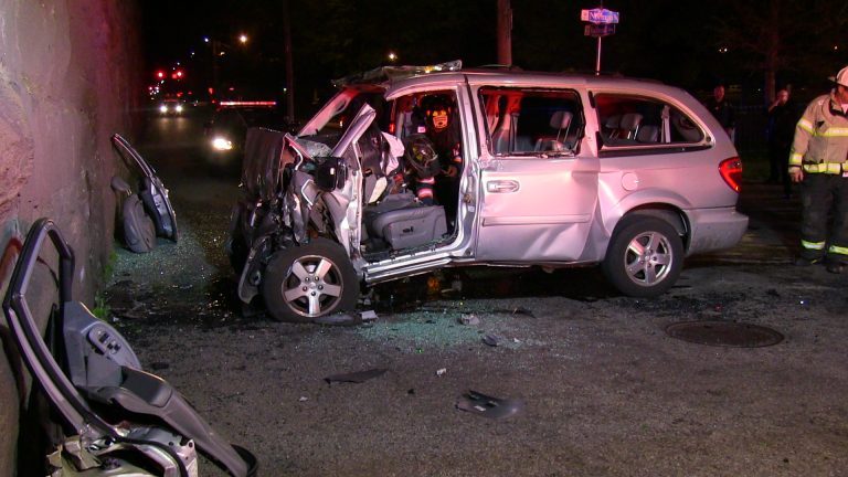 11:34pm–#Bridgeport CT– It took firefighters about a half hour to extricate a man who drove his minivan into the wall on Railroad Avenue from Norman Street just past Went Park. Assistant Fire Chief Caldaroni told me the man (who appeared to me to be an older man) will be alright after the crash.