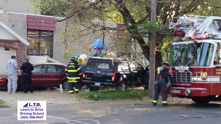 6:57pm–#Fairfield CT– Police are investigating a crash on Grasmere Avenue where a black pick up truck struck a traffic sign near Meadowbrook Road, continued to hit a parked car and then into the fencing of Pumpkin Pre School. Â Firefighters helped extricate the driver who was then transported to the hospital.