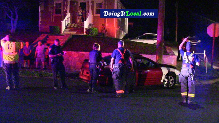 11:27pm–#Bridgeport CT– A man was arrested after crashing on Madison Avenue at Queen Street, not for the accident nor for having the wrong plates on the car but for allegedly trying to assault AMR EMS personnel with a knife. Police were interviewing first responders at the scene. Power was out in the immediate area, UI was on scene.