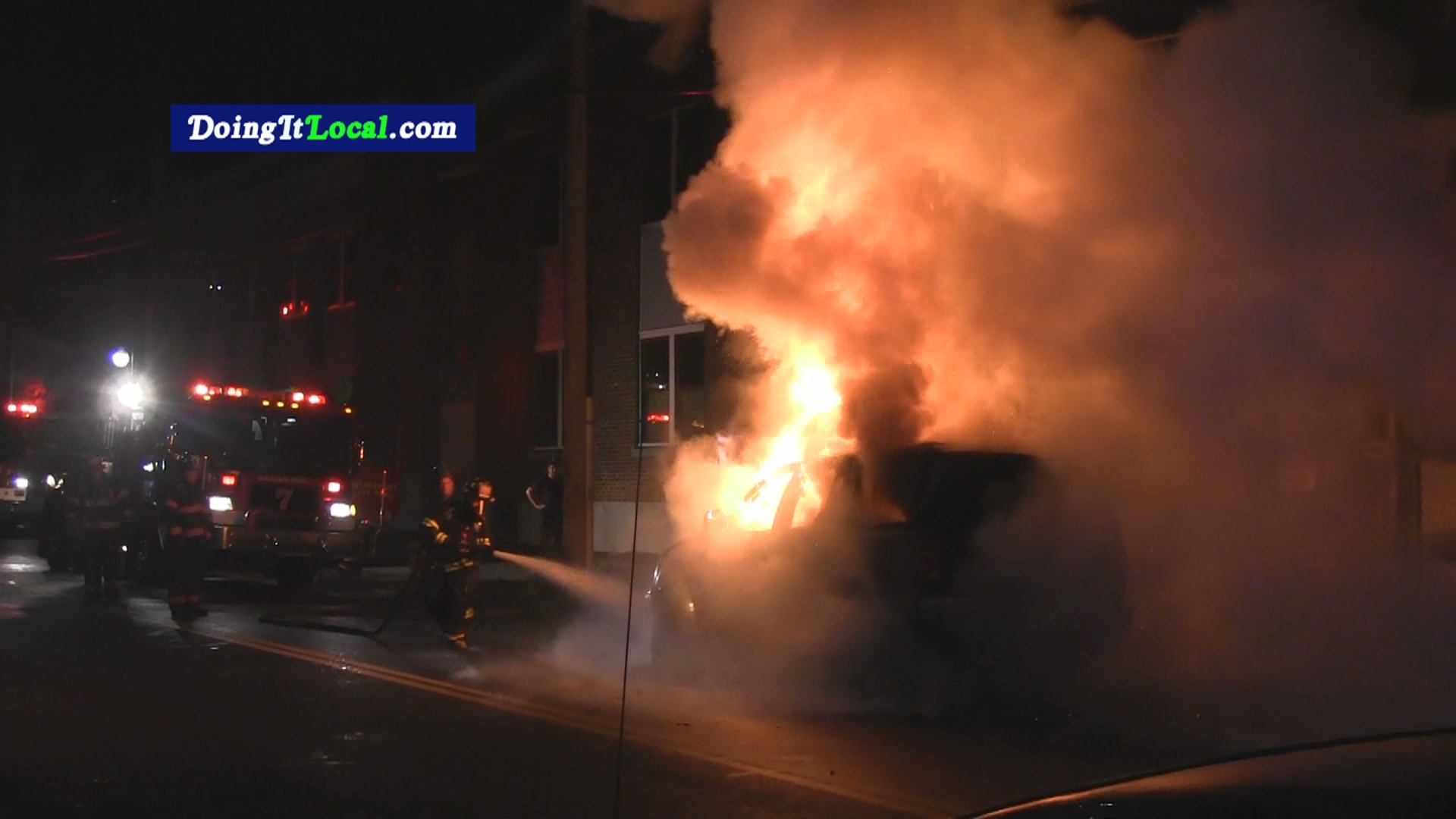 1:04am–#Bridgeport CT– Tonight’s vehicle fire was in the Black Rock section of town at Brewster Avenue near Fairfield Avenue. The driver told me he was giving a friend a ride. Just before the friend got out the SUV started sputtering and he pulled over and notice a fire under the hood that spread to the rest of the vehicle.
