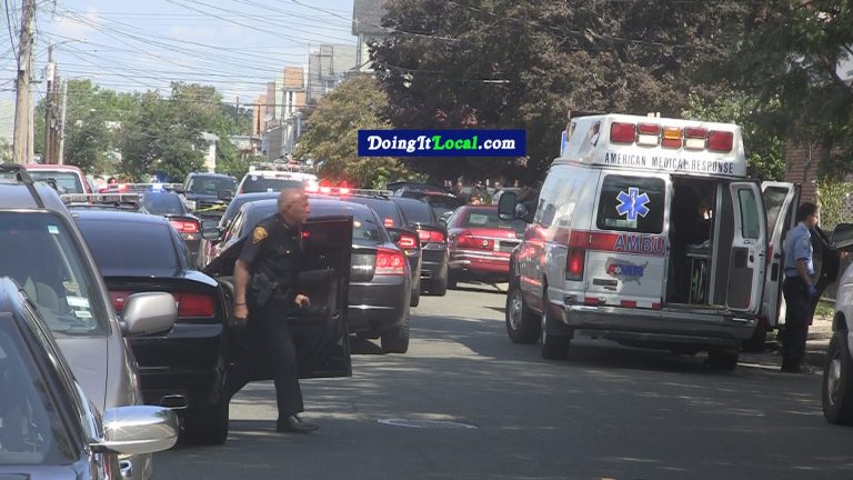 10:58am–#Bridgeport CT– Witness told me they heard an exchange of gunfire on 6th Street around 11am and saw a white car speed away. The witnesses said the gunfire found an innocent man working on his car in his driveway striking him in the head near/in his eye. Police spokesperson Av Harris said the man “is not in good condition but at this point, this is not yet a homicide” Chief AJ Perez can be seen in this photo arriving on the scene.