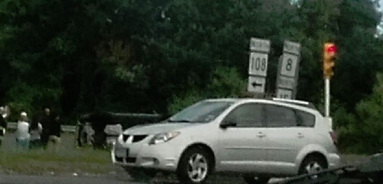 3:24pm–#Trumbull CT– Avoid the entance to Route 8 and Route 15 on Hawley Lane after a multi car accident. You can see one car on its side in the photo a viewer sent in.