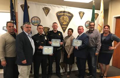On October 17, 2017, Chief Armando Perez with the Board of Police Commissioners presented three Bridgeport Police officers with the Merit Award for Excellent Arrest. This was the first award ceremony under a new procedure that will award officers for their accomplishments on an expedited basis.